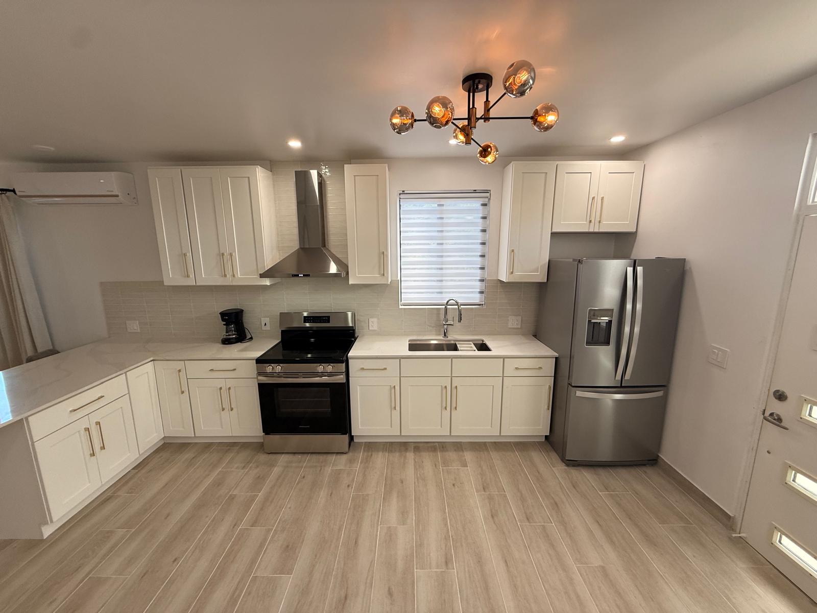 Brand new 1600 Sq/ft home with beautiful open concept floor plan, 9 foot ceilings. White Kitchen Cabinets, Quartz Countertops, Stainless Steel Double Door Fridge/Freezer with Ice Maker & Filtered Water Dispenser. Stove with oven, washer & dryer.